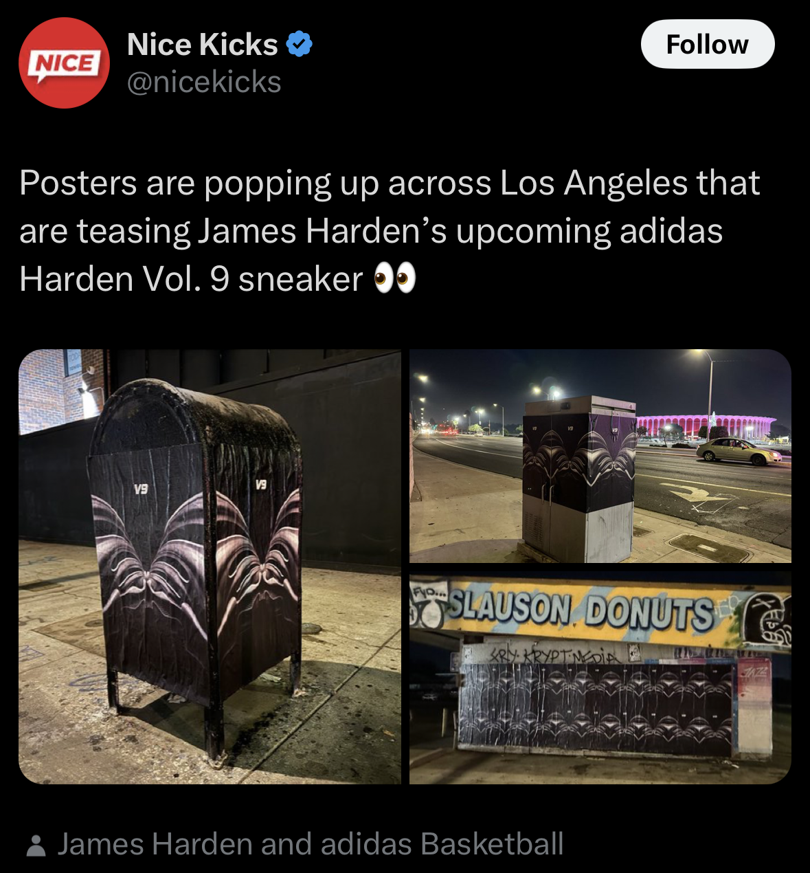 Adidas Harden Vol 9 Wild Posting Campaign in Los Angeles. inglewood near intuit dome, sofi stadium and the forum. west hollywood, melrose/fairfax/beverly, hollywood, dtla, k-town, century city, beverly hills